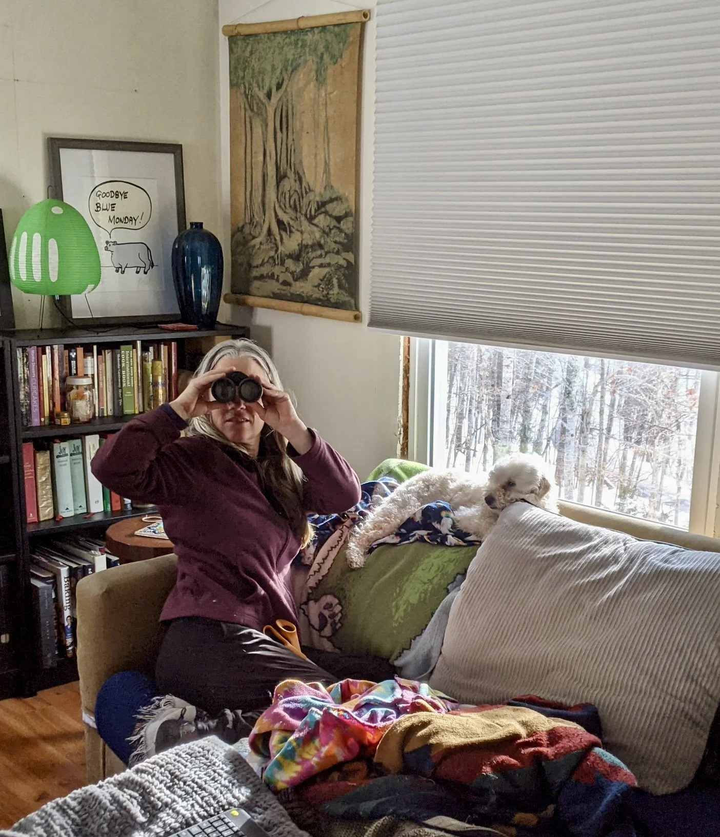 I love her for it. What would I do without this daily ritual that gets me outside before I am actually ready? Part of the ritual these days is getting the winter gear on, stepping outside and then seeing and hearing what birds are around. The other day I saw a Golden Crowned Kinglet, a Chickadee, and a Tufted Titmouse zipping around together. The Crows have been quite verbal as well. I watch them graze on the ground for Beech nuts and who knows what else. I watch as they flip moss up with their beaks for no apparent reason, although I am sure there is one. I can't help but think about my dad. Growing up he would see a group of animals grazing in a field and would say "they sure are working hard.” I think those exact words when I watch the birds searching for their next morsel.